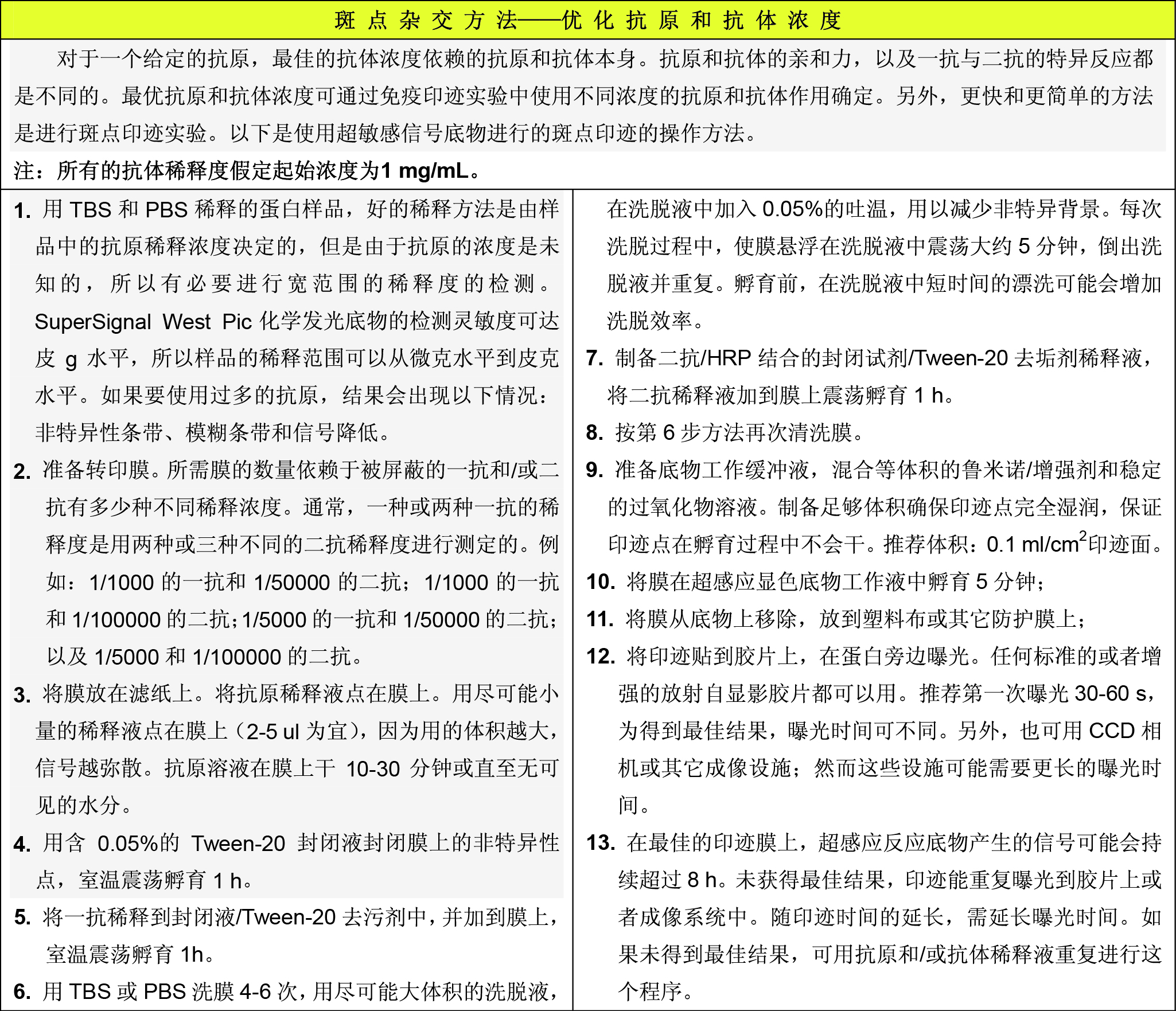 重要提示:在各次免疫检测之间不应使印迹膜干燥。印迹膜干燥将会使任何剩余抗体与膜永久性结合。