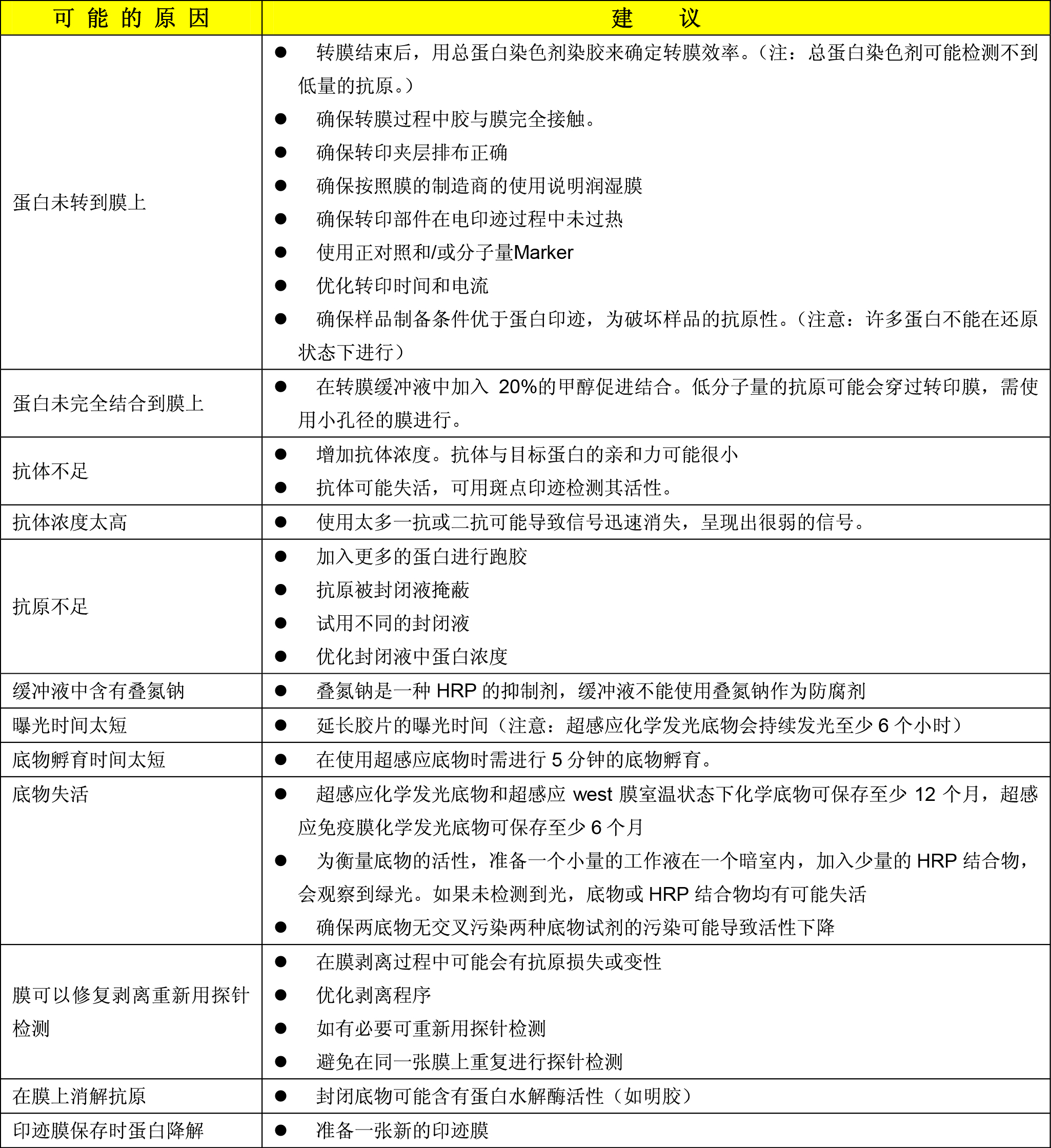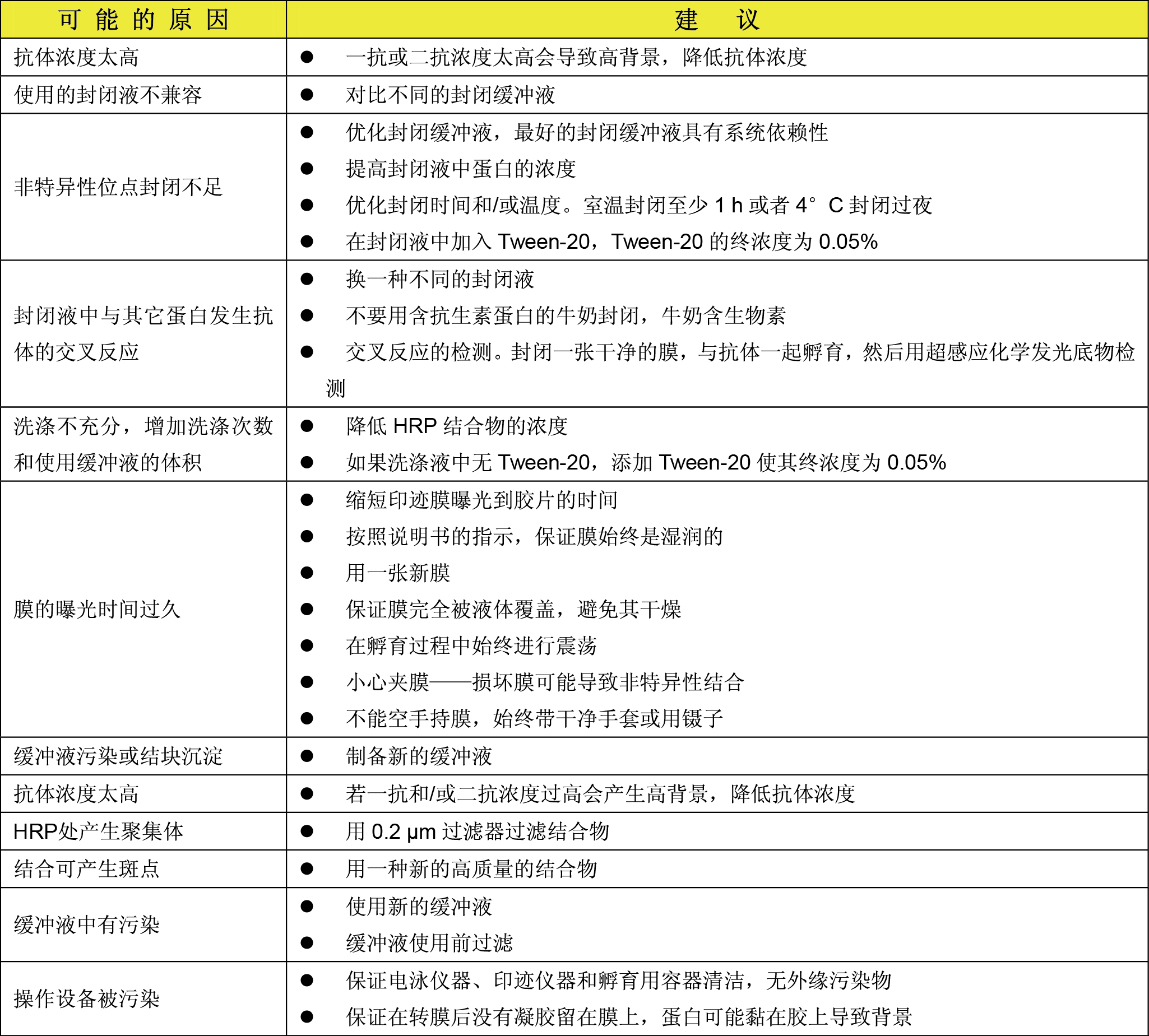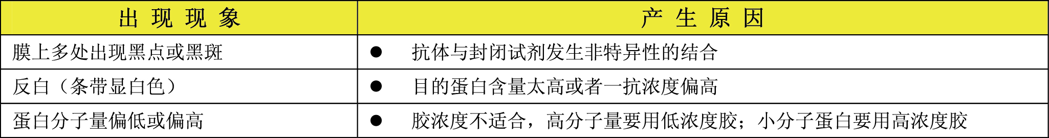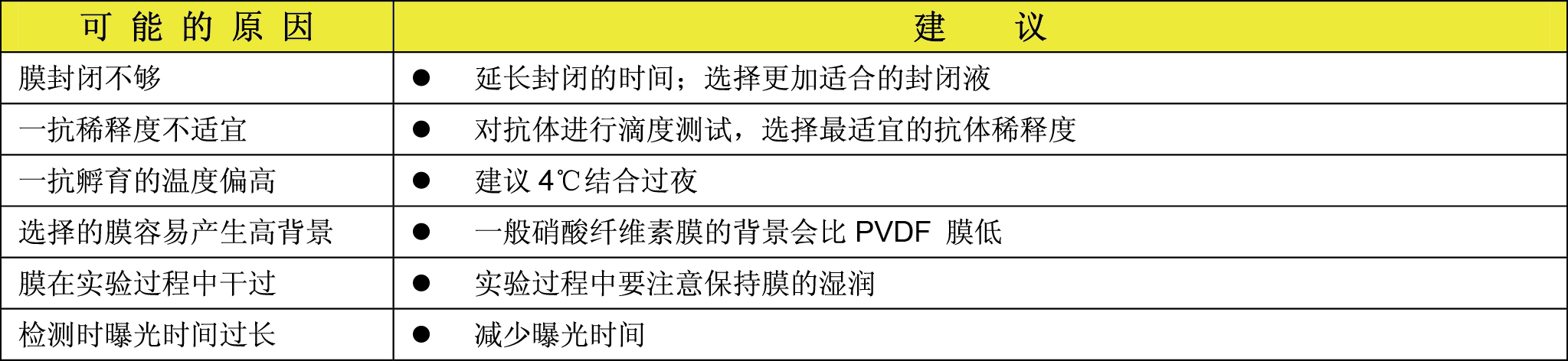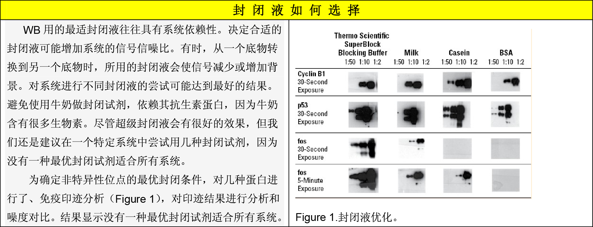 ② 使用 5%的BSA 作为封闭试剂,不能使用脱脂奶粉(因为脱脂奶粉中含有酪蛋白,会出现很高的背景)